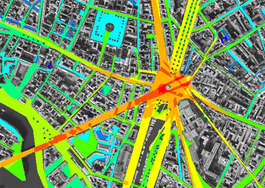 work in progress: visibility graph analysis of Place de la Bastille, Paris.