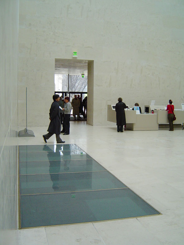 There remains the question: Is the use of high transparency glass constructions such as floors functional in public buildings?